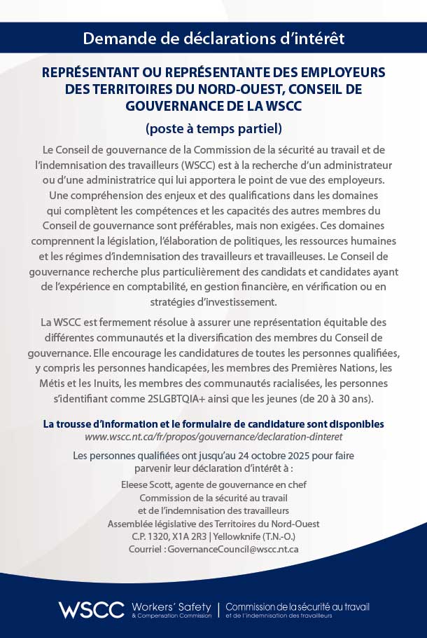 D’expression d’intérêt - Conseil de gouvernance Publication Date September 24th, 2025 Primary Document 000-GC EOI - NWT Employer Rep - FR_1-Oct-2025 -FINAL.pdf