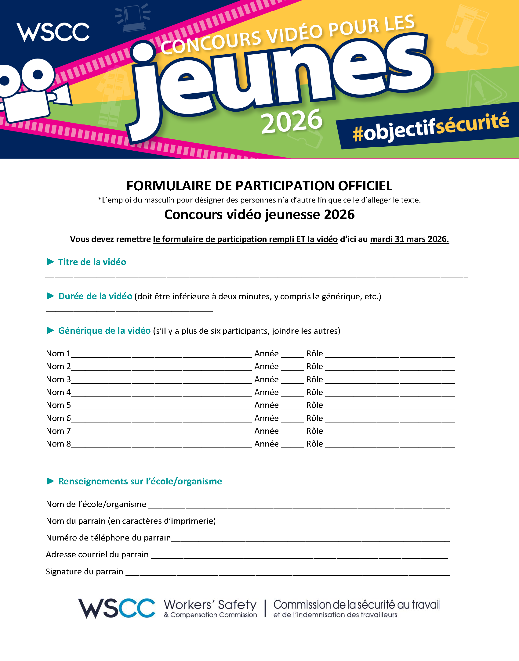 Vous devez remettre le formulaire de participation rempli ET la vidéo d’ici au mardi 31 mars 2026.