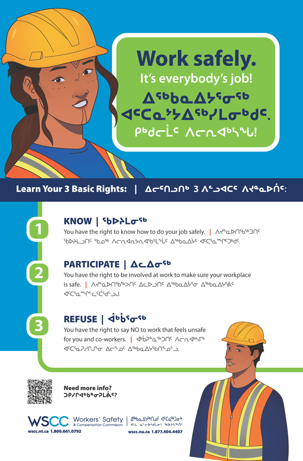 Work safely. It’s everybody’s job! Publication Date September 15th, 2025 Primary Document Work safely. It’s everybody’s job! Additional Documents Work safely. It’s everybody’s job! - Poster - Gwich'in Work safely. It’s everybody’s job! - Poster - Inuvialuktun Work safely. It’s everybody’s job! - Poster - North Slavey Work safely. It’s everybody’s job! - Poster - South Slavey Work safely. It’s everybody’s job! - Poster - Tłı̨chǫ