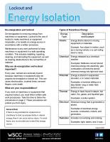 De-energization is removing energy from machinery or equipment. Lockout is the use of lock(s) to make machinery or equipment inoperable, or to isolate an energy source in accordance with a written procedure.
